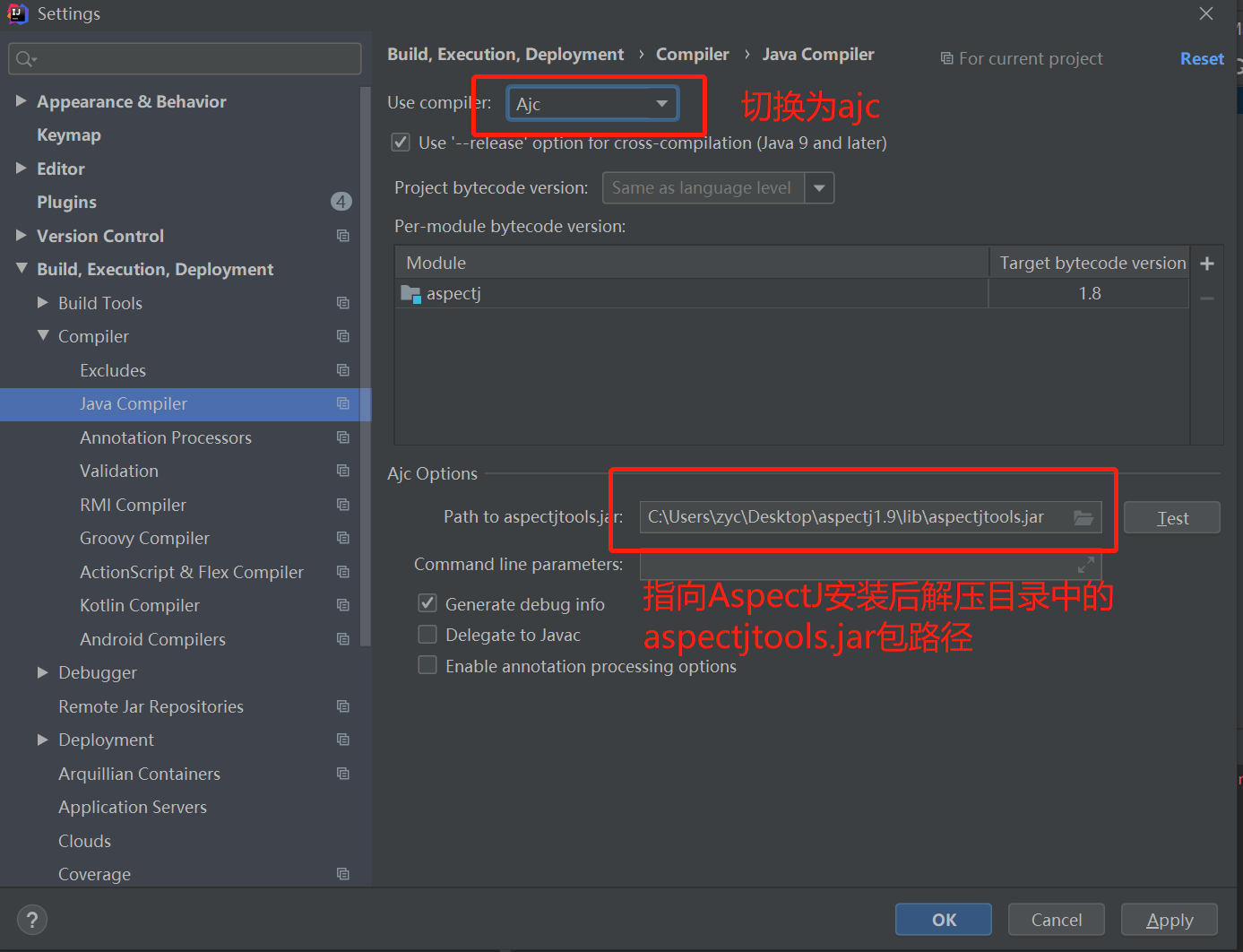 第三步切换idea中java编译器为ajc编译器