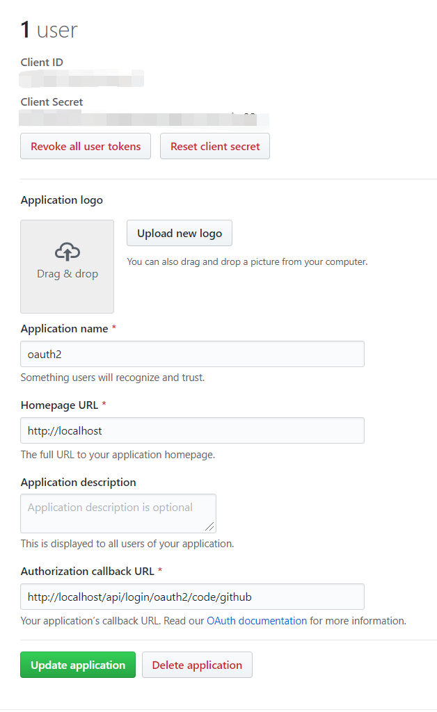 然后在配置文件中填上刚刚注册的应用的clientId和clientSecret
